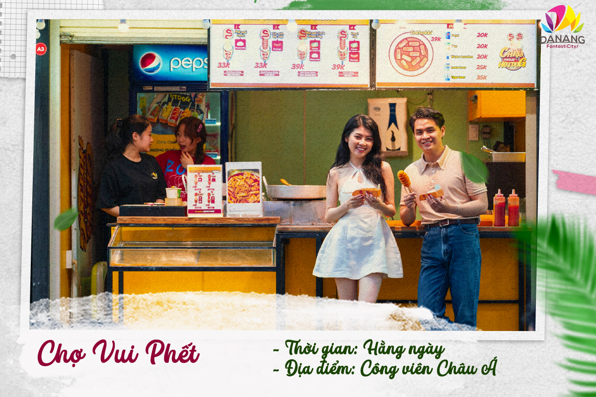 Một không gian ẩm thực hoàn toàn mới dưới hình thức “Chợ Vui Phết” sẽ được trình làng hàng chục gian hàng với đa dạng mặt hàng đặc sắc, ấn tượng. Không gian ẩm thực này sẽ trải dài từ khu Hàn Quốc đến khu Trung Quốc, nổi bật trên cung đường Chợ Vui Phết là Nhà hàng Buffet BBQ Panda có sức chứa 1500 chỗ ngồi cùng thực đơn đa dạng phong phú cho du khách lựa chọn với mức giá từ 250.000 VNĐ. Không gian chợ được decor sáng tạo và bắt mắt cũng sẽ đưa “Chợ Vui Phết” trở thành điểm đến check-in mới mẻ dành cho du khách khi đến Đà Nẵng.