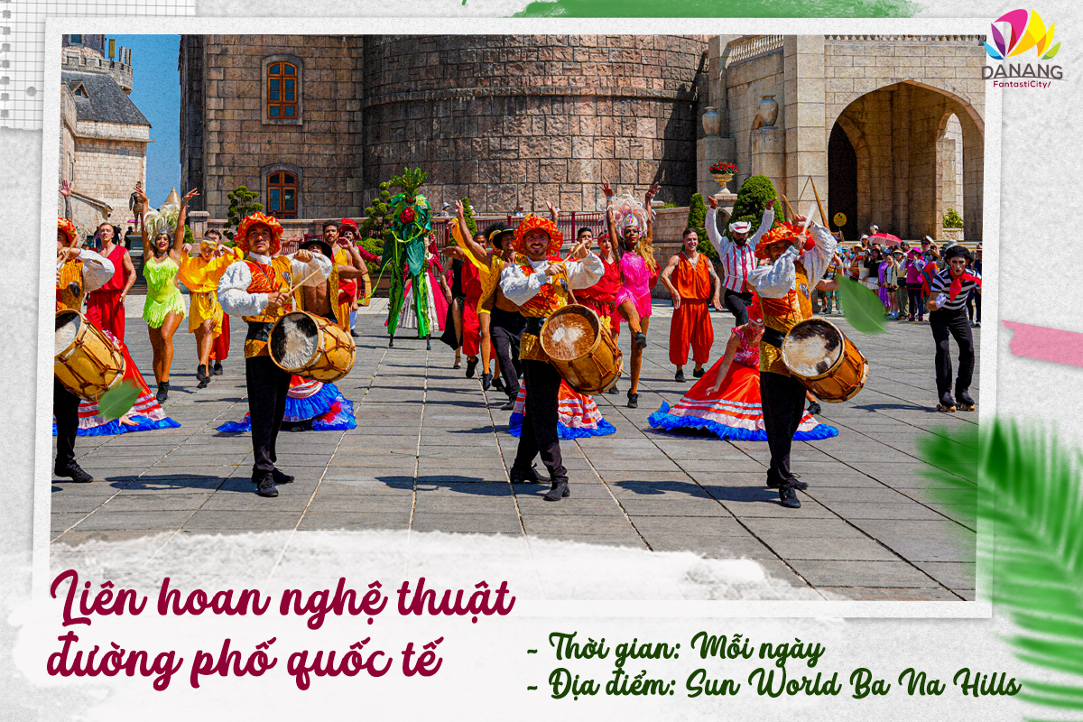 Liên hoan nghệ thuật đường phố quốc tế có sự tham gia của các nghệ sỹ đến từ khắp nơi trên thế giới, trong trang phục rực rỡ, sẽ trình diễn đa dạng các thể loại như nhảy múa Tango, Samba, Malambo; trình diễn ảo thuật…, biến Sun World Ba Na Hills trở thành một sân khấu nghệ thuật khổng lồ. Những con đường rực rỡ sắc màu cờ phướn cùng những góc phố được lấp đầy bởi âm nhạc, những vũ điệu cuồng say,… hứa hẹn mang đến sự hân hoan, náo nhiệt chưa từng có cho du khách.