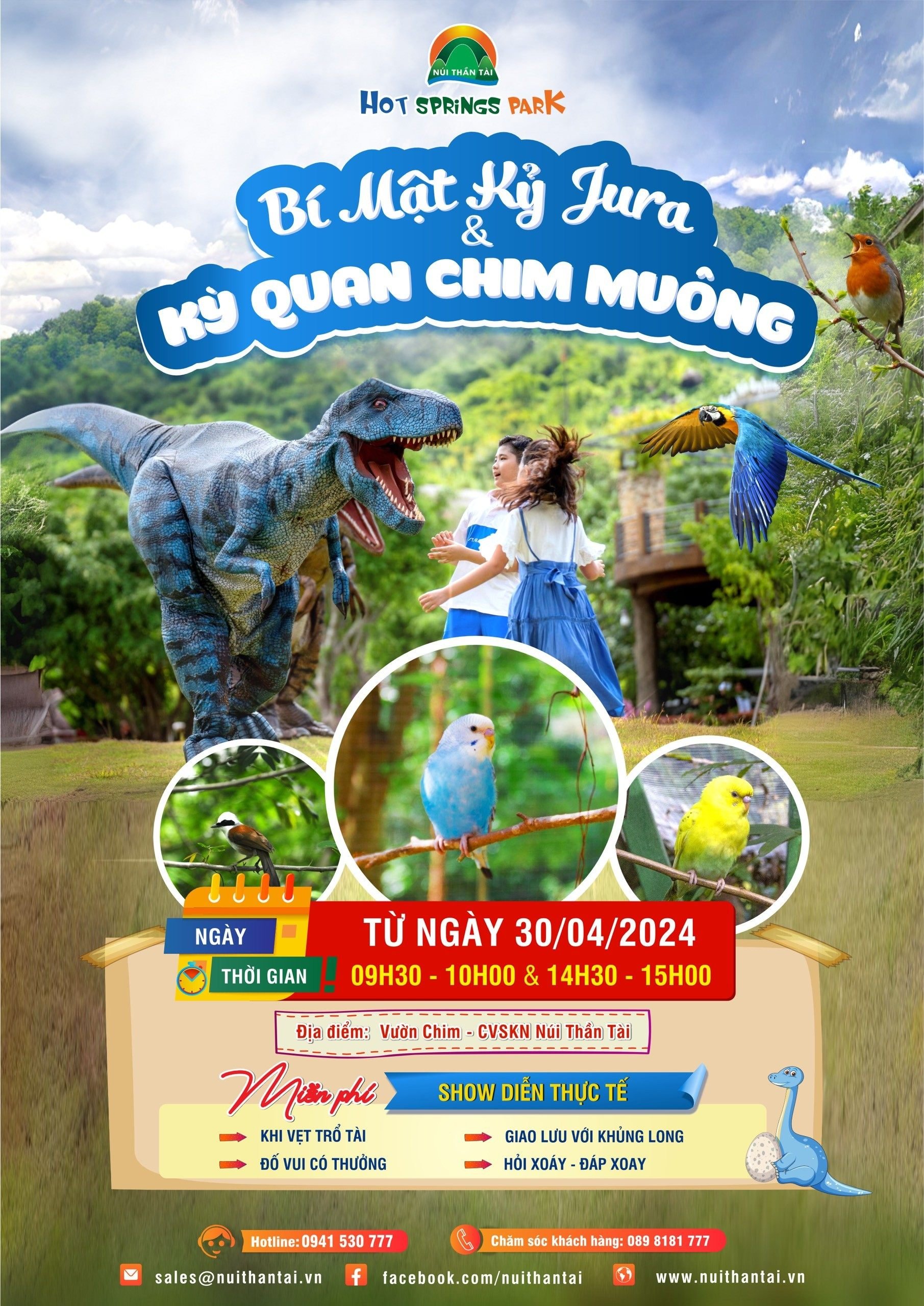 Đặc biệt, Show “Bí Mật Kỷ Jura & Kỳ Quan Chim Muông” sẽ được phục vụ miễn phí dành tặng đến quý du khách khi vui chơi, nghỉ dưỡng tại CVSKN Núi Thần Tài dịp lễ này.